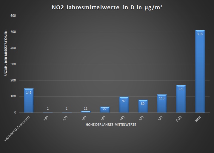 Wir haben die Bundesregierung gefragt, wie es mit der Einhaltung der Grenzwerte bei den Luftschadstoffen - EU und WHO - aussieht. Die Antwort: rekordverdächtig schlecht. Bei den EU-Grenzwerten für Stickstoffdioxid, was zu einem großen Teil von Dieselfahrzeugen emittiert wird, überschreiten im Jahr 2014 29 Prozent aller Messstellen den Jahresmittelwert von 40 μg/m³. Die EU-Kommission hat darum 2015 ein vertragsverletzungsverfahren gegen Deutschland eingeleitet.